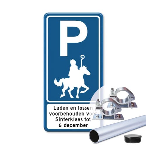 sinterklaasbord-met-paal-paalbeugels-en-paaldop Gepubliceerd 07/10/2024 op 500 × 500 in Parkeerbord Sinterklaas – 60x30cm – Met paal 150cm + paalbeugels + paaldop (+€38)
