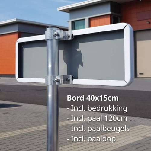 parkeerbord-met-paal-beugels_en_paaldop-40x15cm Gepubliceerd 22/04/2020 op 500 × 500 in Parkeerbord zelf ontwerpen 40x15cm – Met paal 120cm + paalbeugels + paaldop (+€35)