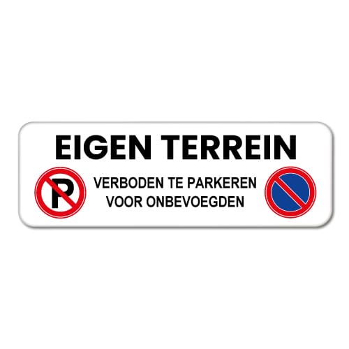 Parkeerbord Eigen Terrein V is een stevig aluminium bord met dubbel omgezette rand voor een makkelijke bevestiging. Het bord roest niet en gaat jarenlang mee. Hieronder vind je meer informatie over het bord en de mogelijke bevestigingen.