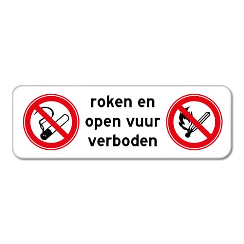 Bord Roken en Open vuur verboden is een stevig aluminium bord met dubbel omgezette rand voor een makkelijke bevestiging. Het bord roest niet en gaat jarenlang mee. Hieronder vind je meer informatie over het bord en de mogelijke bevestigingen.