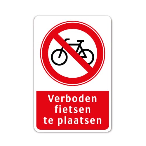 Bord Verboden fietsen te plaatsen is een stevig aluminium bord met dubbel omgezette rand voor een makkelijke bevestiging. Het bord roest niet en gaat jarenlang mee. Hieronder vind je meer informatie over het bord en de mogelijke bevestigingen.