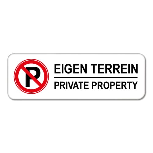 Parkeerbord Eigen Terrein – Private Property is een stevig aluminium bord met dubbel omgezette rand voor een makkelijke bevestiging. Het bord roest niet en gaat jarenlang mee. Hieronder vind je meer informatie over het bord en de mogelijke bevestigingen.
