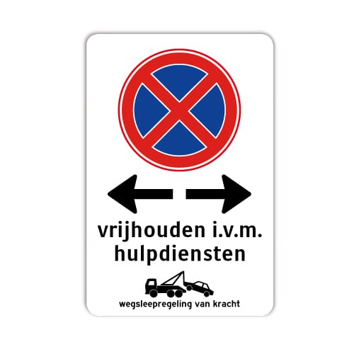 Parkeerbord Vrijhouden i.v.m. hulpdiensten pijl links en rechts is een stevig aluminium bord met dubbel omgezette rand voor een makkelijke bevestiging. Het bord roest niet en gaat jarenlang mee. Hieronder vind je meer informatie over het bord en de mogelijke bevestigingen.