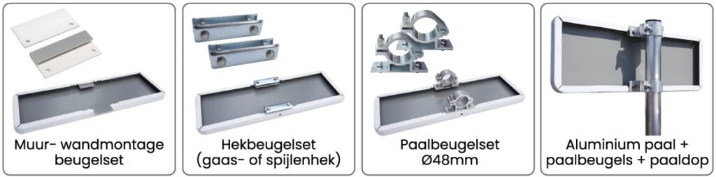 Bij het bestellen van het bord kun je direct uit een aantal bevestigingsopties kiezen. De palen die wij verkopen (bv 120cm of 150cm) is de totale paal. Houd er dus rekening mee dat de paal ongeveer 1/3e de grond in gaat.